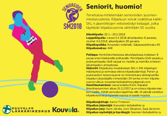 Loppukilpailu Kouvolan keilahallissa sunnuntaina 1.10.2017 kello 9.00 alkaen.