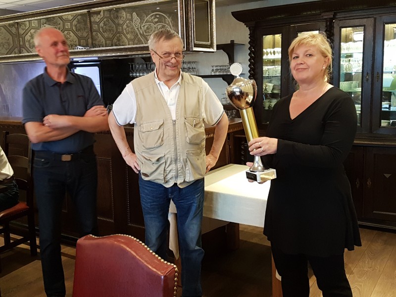 Pinfansin Nina Porvari palkittiin Kouvolan Keilailuliiton kauden 2017-2018 Fair Play -pelaajana. Pokaali ojennetaan henkilölle, joka yleisesti positiivisen ajattelun ja toiminnan myötä tuo esiin sitä keilahallilla ja keilaajien parissa. Palkinto jaettiin keilailuliiton sääntömääräisessä vaalikokouksessa ja sitä olivat ojentamassa edellisen vuoden voittaja Ari Paananen (vas.) ja Kouvolan Keilailuliiton puheenjohtaja Aarne Timonen.