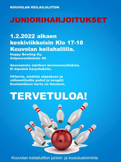 Kouvolan Keilailuliiton suositut junioriharjoitukset alkavat talven osalta keskiviikkona 1.2. kello 17.00-18.00. Mukaan ovat tervetulleita kaikki entiset ja uudet keilailusta kiinnostuneet nuoret.