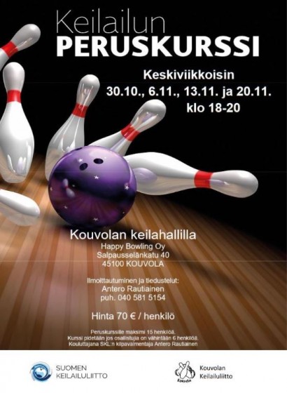 Kouvolan Keilailuliitto järjestää keilailun peruskurssin Kouvolan keilahallissa loka-marraskuussa. Kurssi toteutetaan neljänä peräkkäisenä keskiviikkona 30.10. alkaen. Muut päivät ovat 6.11., 13.11. ja 20.11. Kurssi-illat pidetään kello 18.00-20.00 ja ne sisältävät teoriaa sekä käytännön harjoittelua.