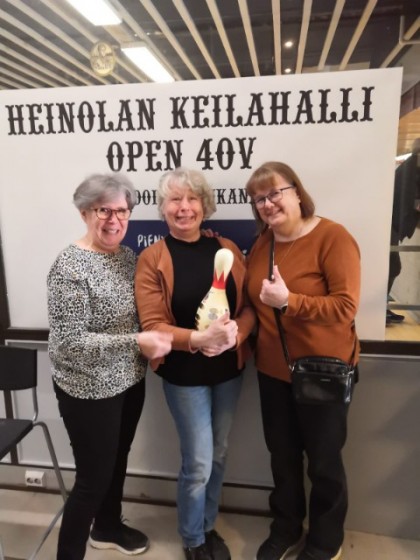 Kouvolan Seudun Keilailuliiton joukkue Soile Hietakallio, Leila Viitanen ja Leena Suhonen keilasivat viiden kaupungin kaupunkiottelun voittoon Heinolassa.