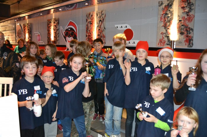 Harjoitustunnin jälkeen mentiin keilahallin yläkertaan palkintojen jakoon